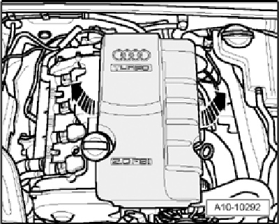 - Remove engine cover - arrows -.