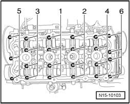 Tighten cylinder head in sequence indicated, in two stages as follows: