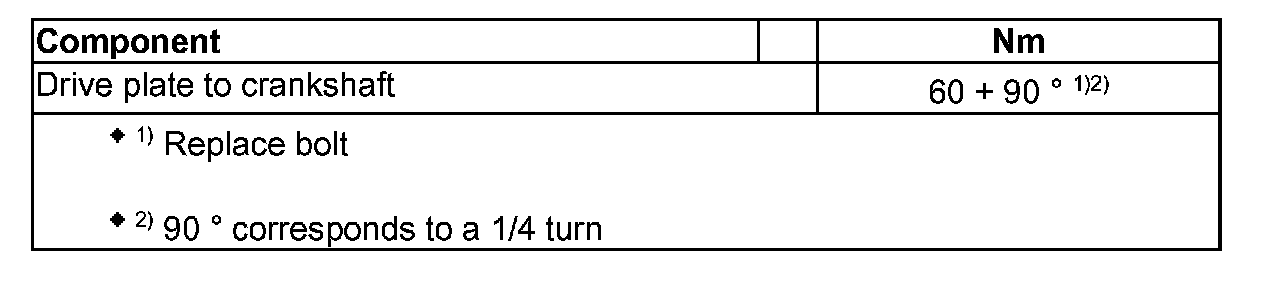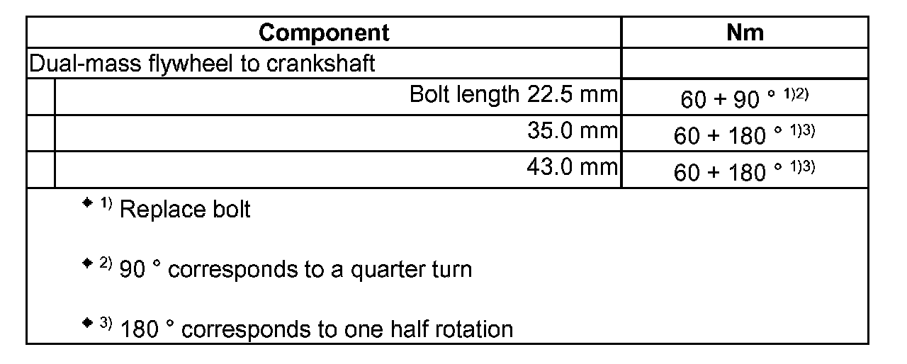 Torque 65 Nm plus 90 degrees (1/4 turn)