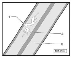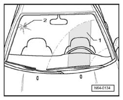 - The damage location must not lie within the drivers direct field of vision - 1 -. This field corresponds to a strip about 29 cm wide (DIN A4 format across) central to the drivers line of sight in direction of travel, bordered above and below by the windshield washer field.