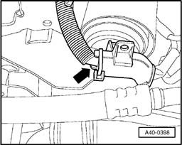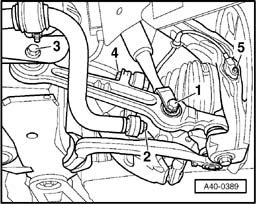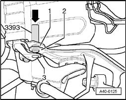 To avoid damaging upper link joints, wheel bearing housing must be braced against a rebound that is too strong, e.g. using engine/transmission jack V.A.G 1383 A