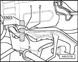 - Before removing subframe, check whether holes - 1 - and - 2 - are aligned using special tool 3393.