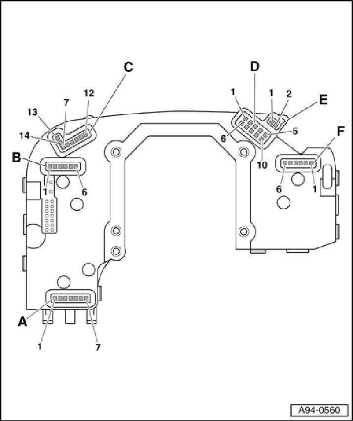 Steering Column Electronics Systems Control Module J527, Front Multi-Pin Connector Assignments