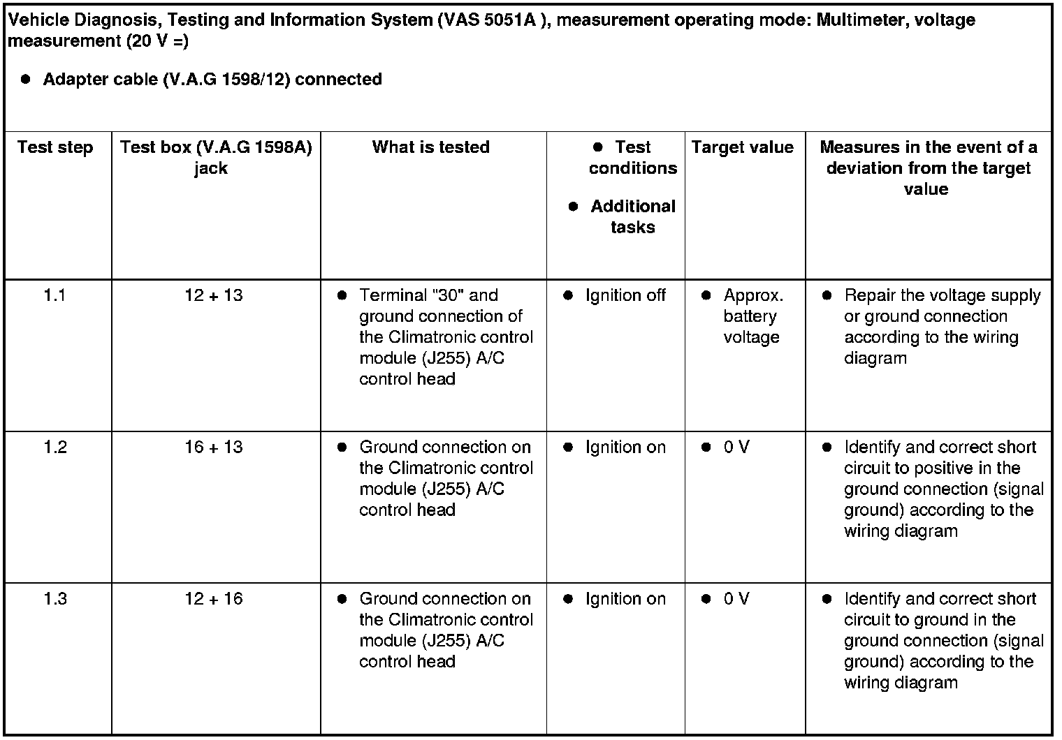 Voltage supply and ground connection of the Climatronic control module (J255) A/C control head