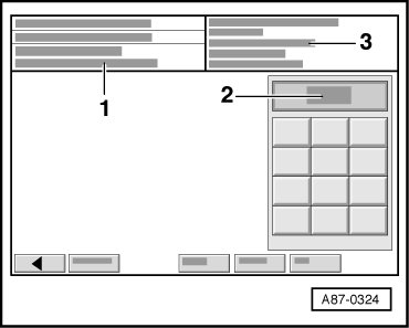 • Display field - 3 - shows the workshop code entered in the Vehicle Diagnosis, Testing and Information System ( VAS 5051A) in the fifth line.