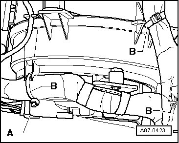 - Press the noise insulation mat to the side until rear screw - C - is accessible.