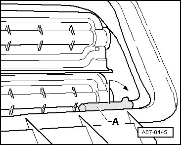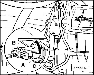 - Reach between the A/C unit and the base plate of the plenum chamber to temperature sensor - A - and rotate it in the direction of the - arrow - by approx. 90°.