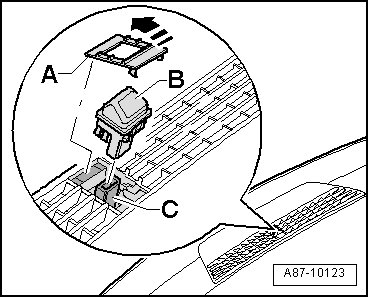 - Secure connector - C - so that it does not slide into the instrument panel and disconnect it from sunlight photo sensor (G107) - B -.