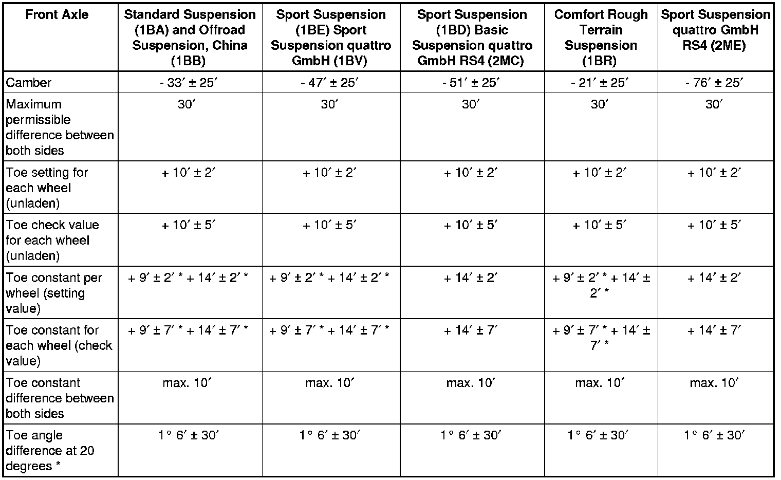* Data applies to Sedan from VIN 8E_2_025688 as well as to Avant.