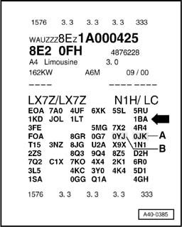 Suspension version installed in vehicle is indicated by the corresponding PR. No. on the vehicle data plate - arrow -.