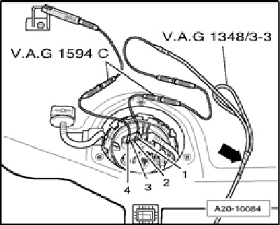 - Connect a jumper cable from a Electrical connector test lead set to terminal - 4 - of the fuel delivery unit and to vehicle Ground (GND).