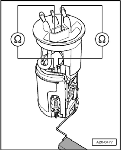- Using a Multimeter , check the electrical circuit between terminals - 1 - and - 5 - of the fuel delivery unit for continuity.