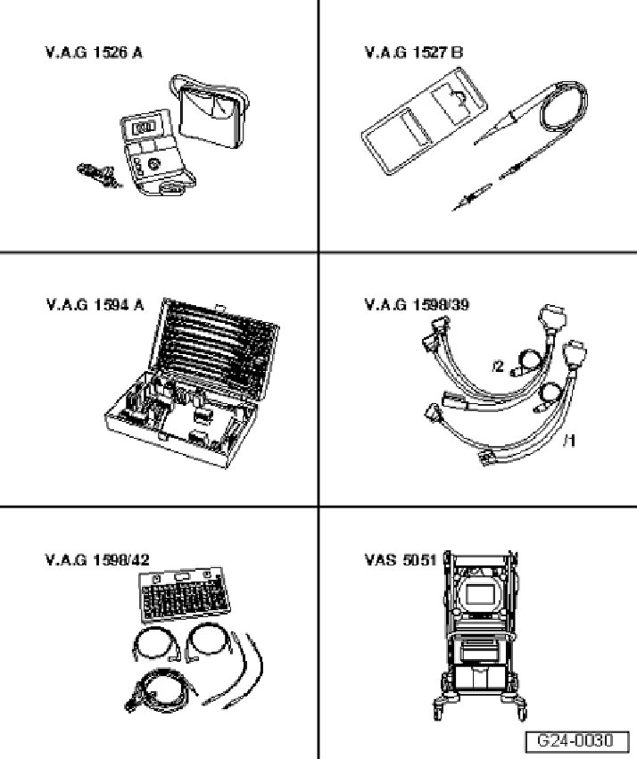 - Connector test kit V.A.G 1594 A or V.A.G 1594C