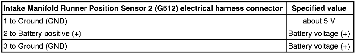- Using a Multimeter, check the Intake Manifold Runner Position Sensor 2 (G512) electrical harness connector for voltage.