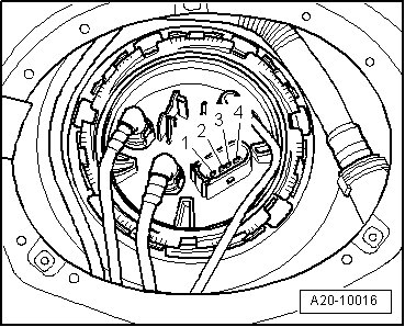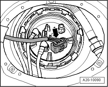 • To check resistance values "tank full" or "tank empty", the fuel delivery unit must be removed. Refer to => [ Fuel Delivery Unit ] With FWD as of 11.04 and the floater of the sensor must be placed in upper or lower end position.