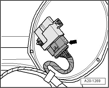 - Disconnect electrical harness connector - arrow - on Fuel Pump (FP) Control Module (J538).