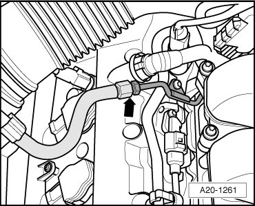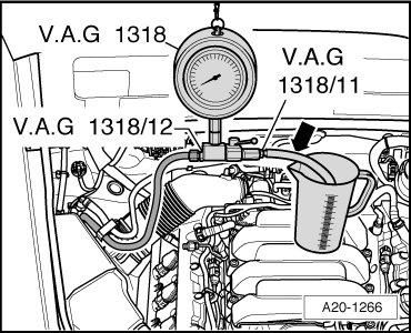 - Connect Pressure Gauge (V.A.G 1318) to fuel line using Adapter (V.A.G 1318/11) and (V.A.G 1318/12).