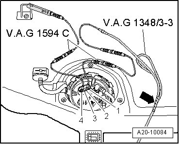 - Connect contact - 4 - to vehicle Ground (GND) using a jumper cable from the Connector Test Set (V.A.G 1594C ).