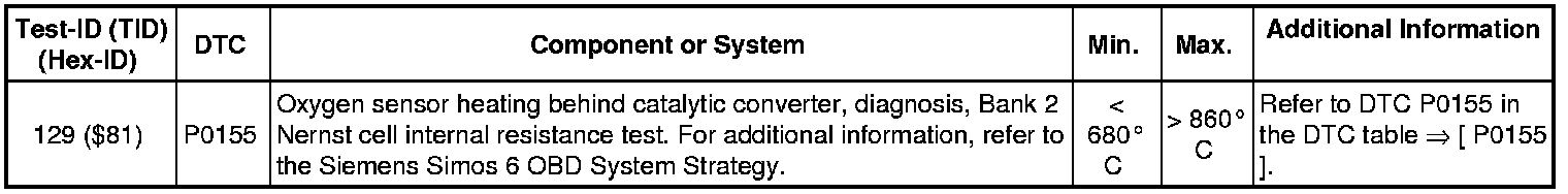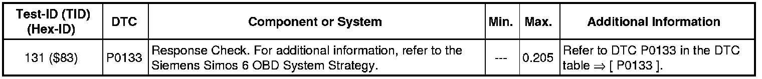 • Depending on diagnostic tester and protocol used, the information displayed in diagnostic mode 06 may be referred to by different names such as Test-ID (TID), Hex-ID, Component-ID (CID), or On-Board Diagnostic Monitor Identifier (OBDMID).
