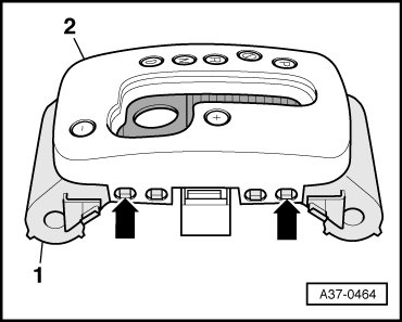 - Press down the retaining hooks - arrows - and pull off the cover - 2 - from the guide - 1 -.