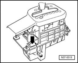^ Location: Shift Lock Solenoid N110 is located in shift mechanism - arrow -.