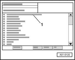 By touching "00 Read DTC Memory Complete System" in the selection - 1 - the automatic test sequence is performed, i.e. a scan is performed of the DTC memory for all systems in the vehicle capable of OBD.