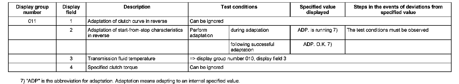 Measured Value Block table - 01J, Continuously Variable Transmission (CVT)