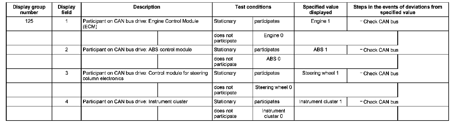 ^ If "0" is displayed and no trouble code has been set in the DTC memory, the corresponding control modules does not have CAN capability (or is faulty).