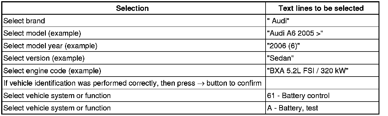 Battery - Vehicles With Energy Management Control Module, Testing With Vehicle Diagnosis Using System VAS 5051B