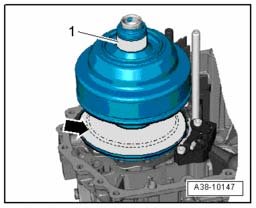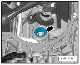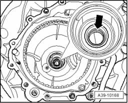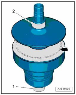 - Through the opening in the transmission housing, check the contact surface - arrow - of the oil pipe in the suction jet pump for signs of wear, cracks or other damage.