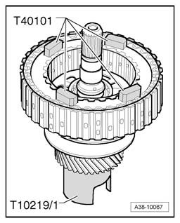 - Measure with digital depth gauge VAS 6087 on shaft contact ring (Thrust plate contact surface) and note measurement - B -.