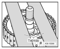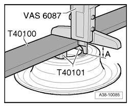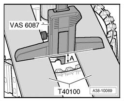 ^ Digital depth gauge VAS 6087 must lie flush on both rulers T40100 when measuring.