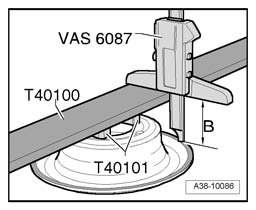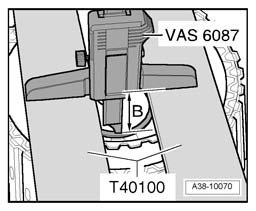 - Measure with digital depth gauge VAS 6087 on lower running surface and note measurement - B -.