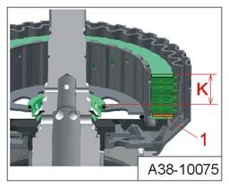 ^ The distance - K - of the clutch from the upper contact ring shim on the shaft (Thrust plate contact surface) is determined.