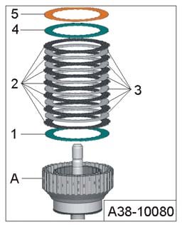 ^ All old, used adjustment discs, outer discs and lining discs must be replaced. They must not be reinstalled as that would not ensure the input shaft function (surface is used up).