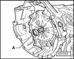 - Replace bearing "A" (transmission input shaft ball bearing) in the input shaft cover.