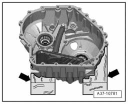 - Place the intermediate housing on two wood supports - arrows - so as not to damage the selector shaft and the sealing surface.