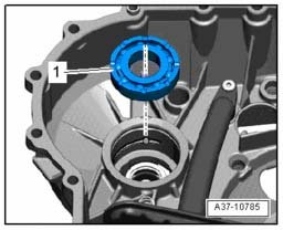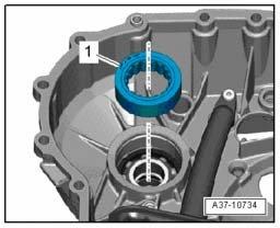 - Install new bearing "E" (ball bearing for disc set "I") - 1 - on the intermediate housing.