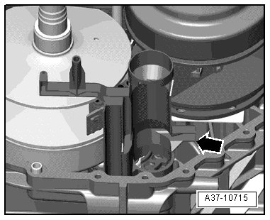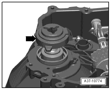 • The retaining bolts - arrows - must engage into the holes in the transmission housing.