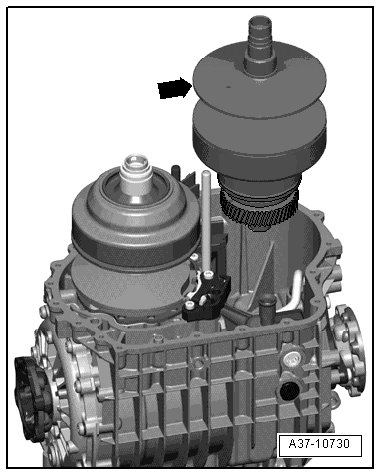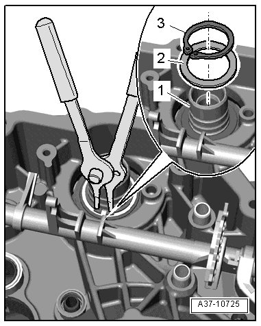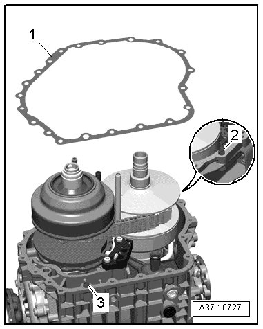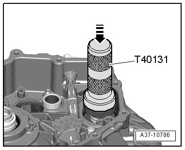 • The alignment bushing - 3 - must be removed, so that the retaining device (T40130/1) can be mounted to the transmission.