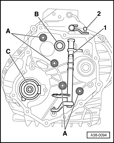 - Remove axial sealing elements - A - (4 pieces) and - B -.