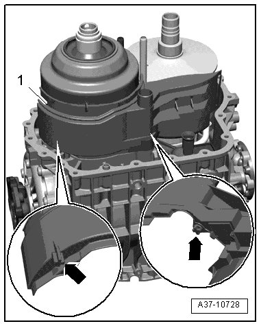 - Remove oil guide piece "I" - 1 -; to do so, carefully remove the retaining pins - arrows -.