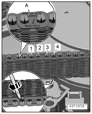 - Turn chain so that the link with the production date stamped on it - A - is visible.