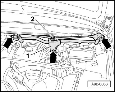 - Remove bolts - arrows - and remove wiper frame - 1 - completely.