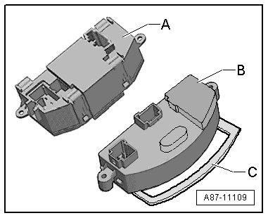 • There are different versions of the replacement fresh air blower control module (for example, versions - A - and - B -). Pay attention to the correct allocation. Refer to the Parts Catalog.
