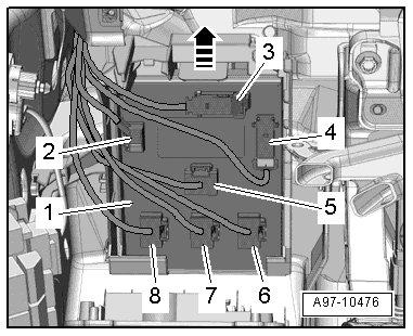 - Disconnect the electrical connectors - 2, 5, 6, 7 and 8 -.