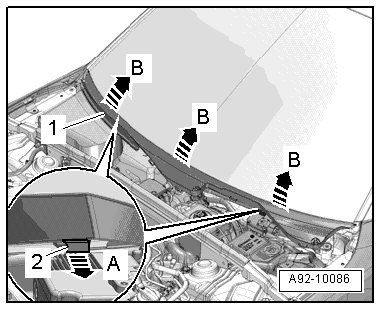 - Remove the securing clips - 2 - - arrow A -.