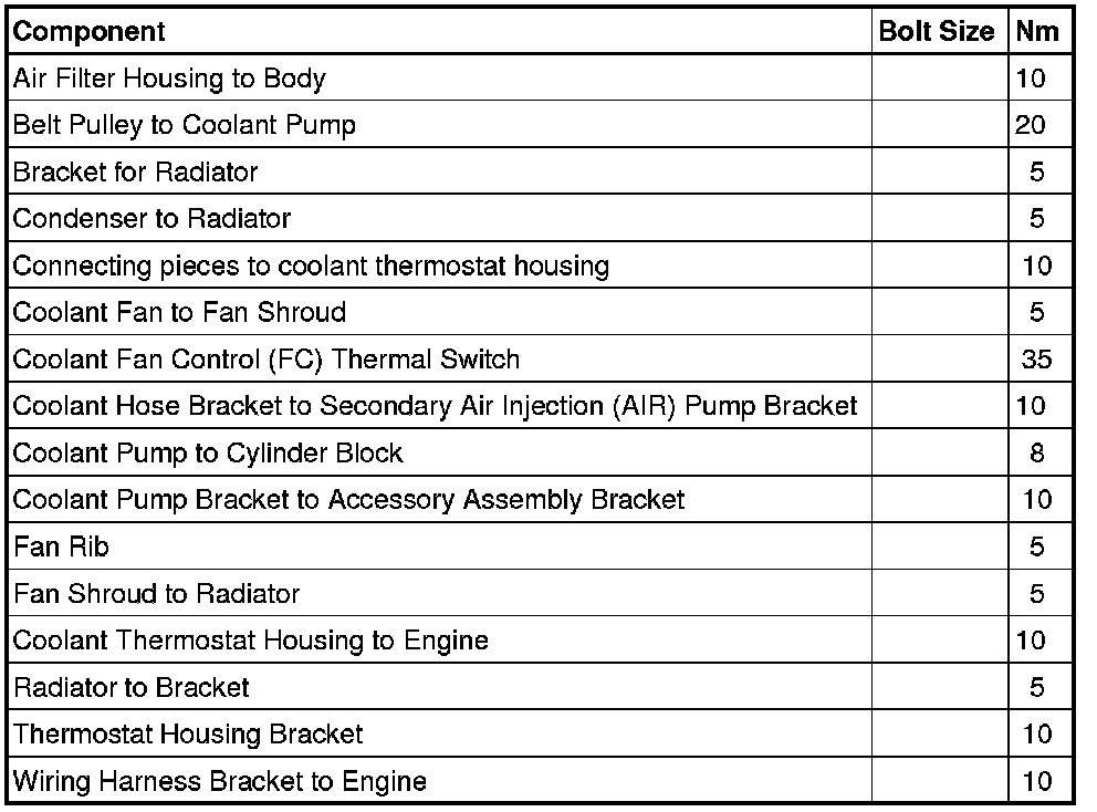 Fastener Tightening Specifications