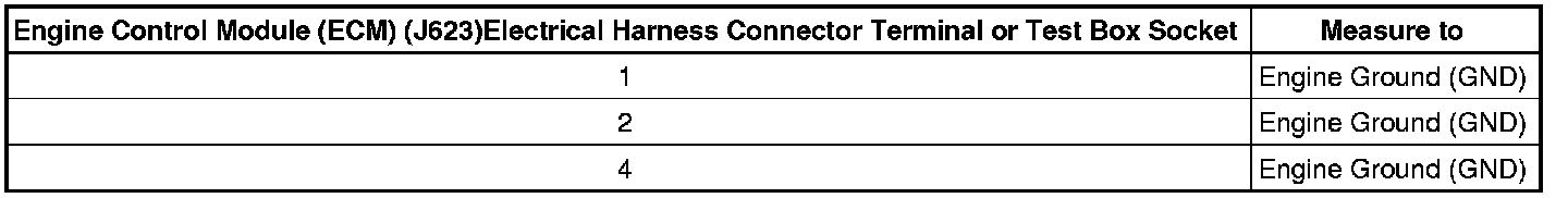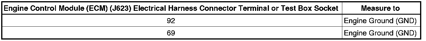Using a Multimeter, check the electrical harness connector terminals to the Engine Control Module (ECM) (J623) electrical harness connector terminals for voltage.