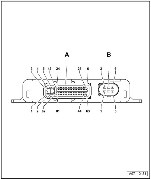 Pin Assignment: A - 81-Pin Connector, black, Connector A B - 6-Pin Connector, black, Connector B